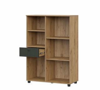 Тумба разделена перегородкой на 2 части. Правая часть шириной 500мм и левая 400мм. В правой части находятся две съемные полки, закрытые глухой створкой. В левой части снизу ниша 376х474х400мм (ШхВхГ), закрытая распашной створкой. Над створкой выдвижной ящик (габариты ящика внутри: 318х100х318мм (ШхВхГ)). Выше располагается открытая ниша, разделенная съемной полкой на 2 части. Фасад накладной. Сборка корпуса не универсальная. Максимальная нагрузка на полки - 5кг.