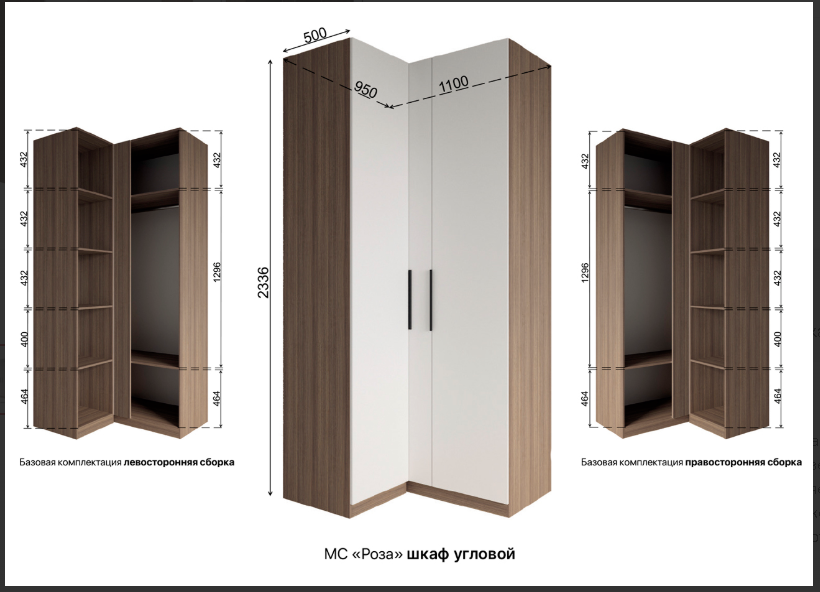МС Роза Шкаф угловой 1100 Орех Франклин/Ройс Пудра скин
