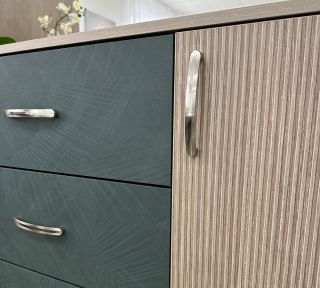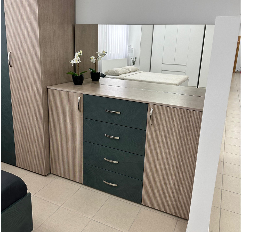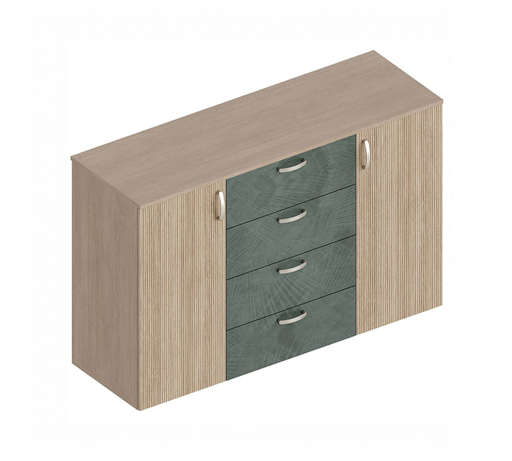 МС "Ева" Комод 2-ств с 4 ящиками 1400х460х920 Тира/Кадена вуд/ Палм грин
