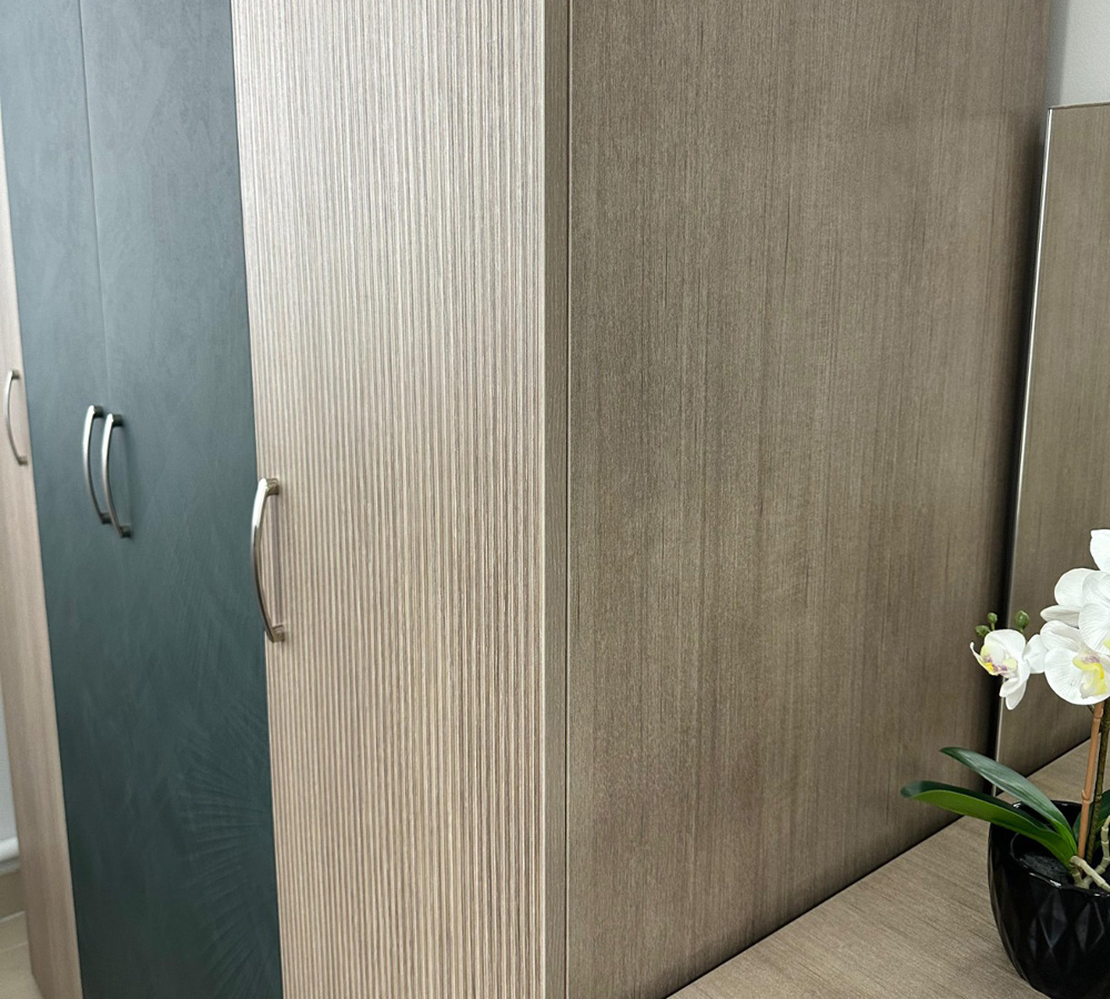 МС "Ева" Шкаф 4-ств для одежды 1600х520х2300 Тира/Кадена вуд/Палм грин