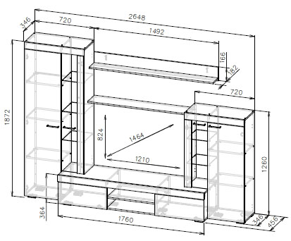 Габаритные размеры изделия (ШхВхГ) 2648х1872х456 мм