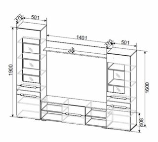 Габариты комплекта при вплотную установленных элементах (ШхВхГ) 2403х1900х370 мм.