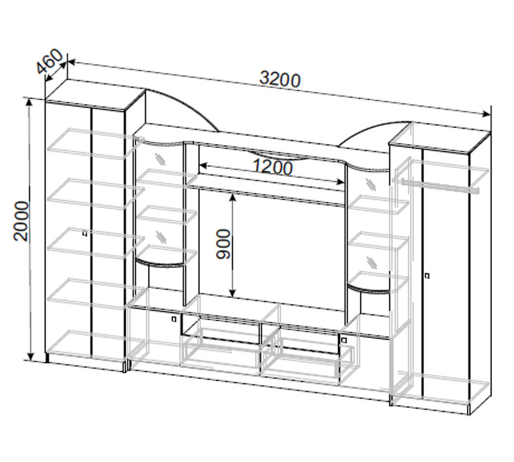 Габаритные размеры ШхВхГ: 3200х2000х460 мм;