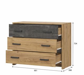 Комод 3 ящика. Ш*В*Г 901*726*390 мм.