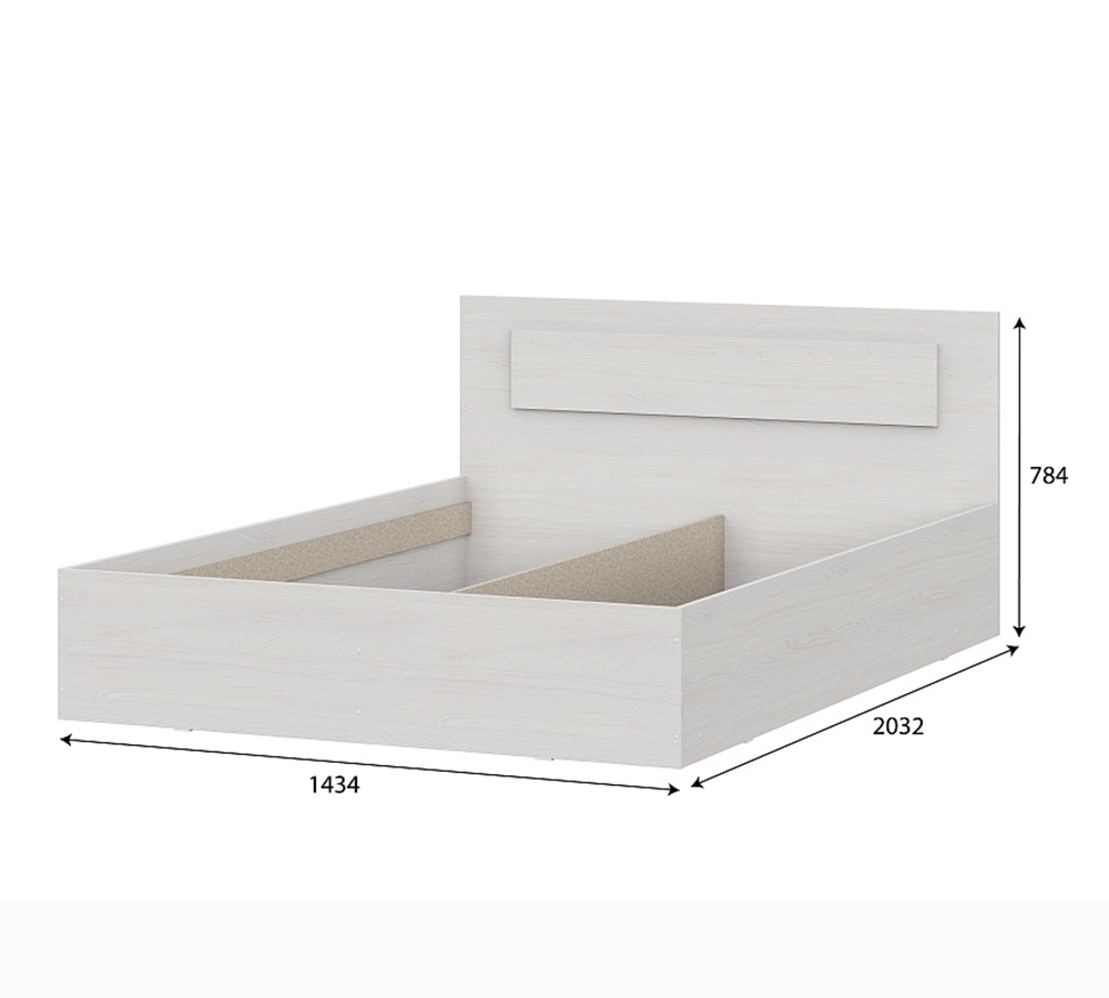 Каркас кровати полностью изготавливается из ЛДСП в цвет корпуса, за исключением внутренних, невидимых деталей, изготавливаемых из неламинированного ДСП.