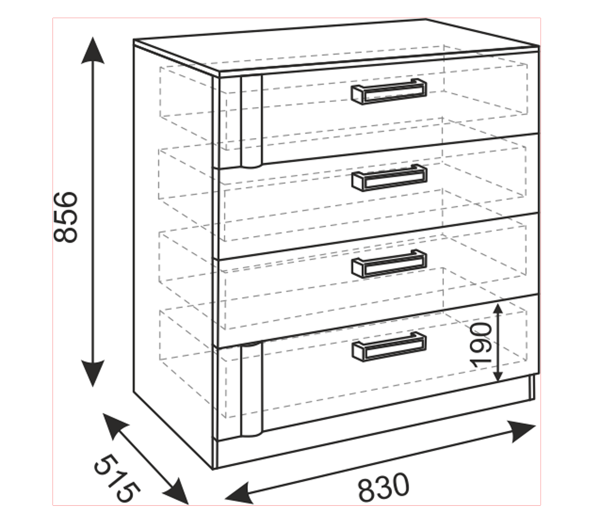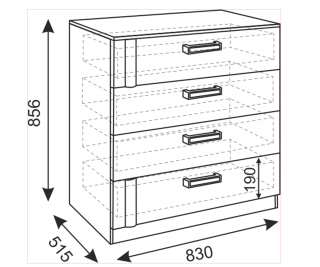 Комод четыре ящика - направляющие шариковые. Габарит: 830*В856*Г515мм. Элемент модульной системы Walker.