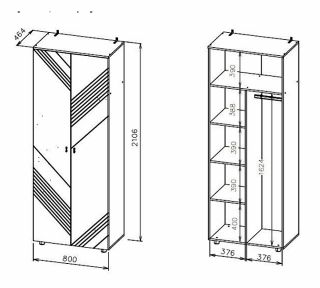 • Габариты модуля (ШхВхГ) - 800х2106х464мм