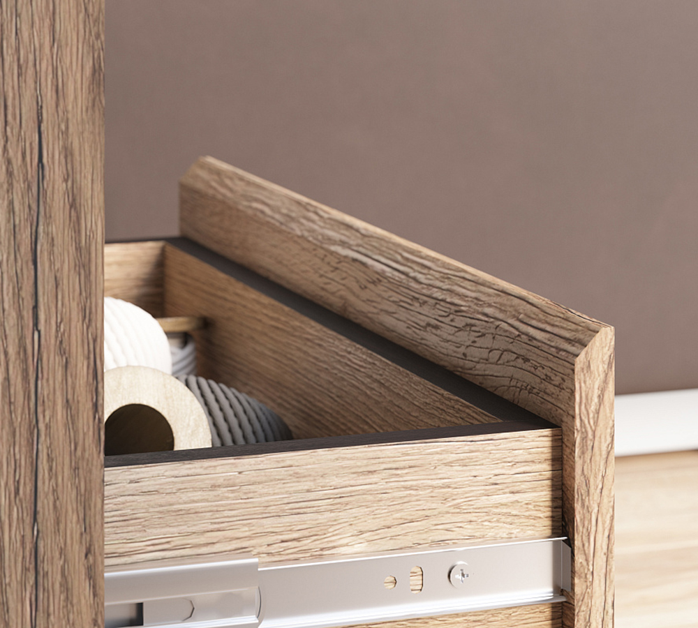 • Фасад вкладной / накладной. Открывание фасадов без ручек. На фасадах скосы на торцах.