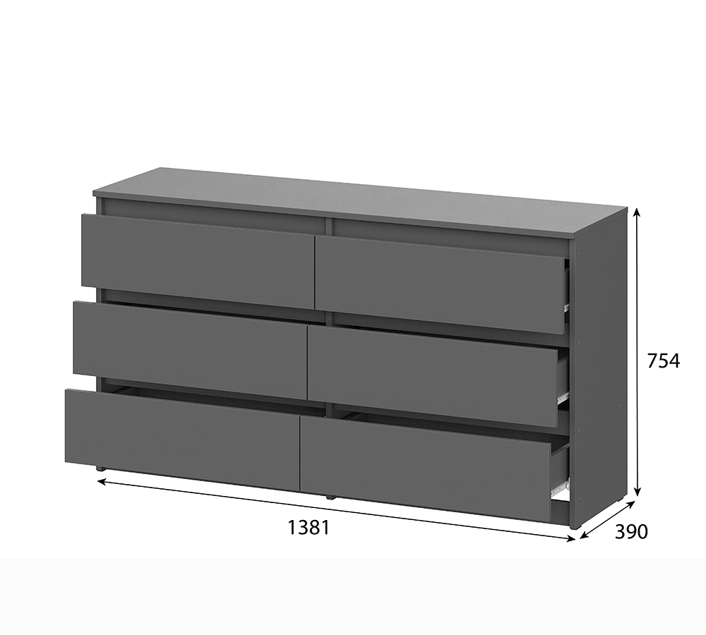 Комод 6 ящиков (ШхВхГ) 1381х754х390 мм