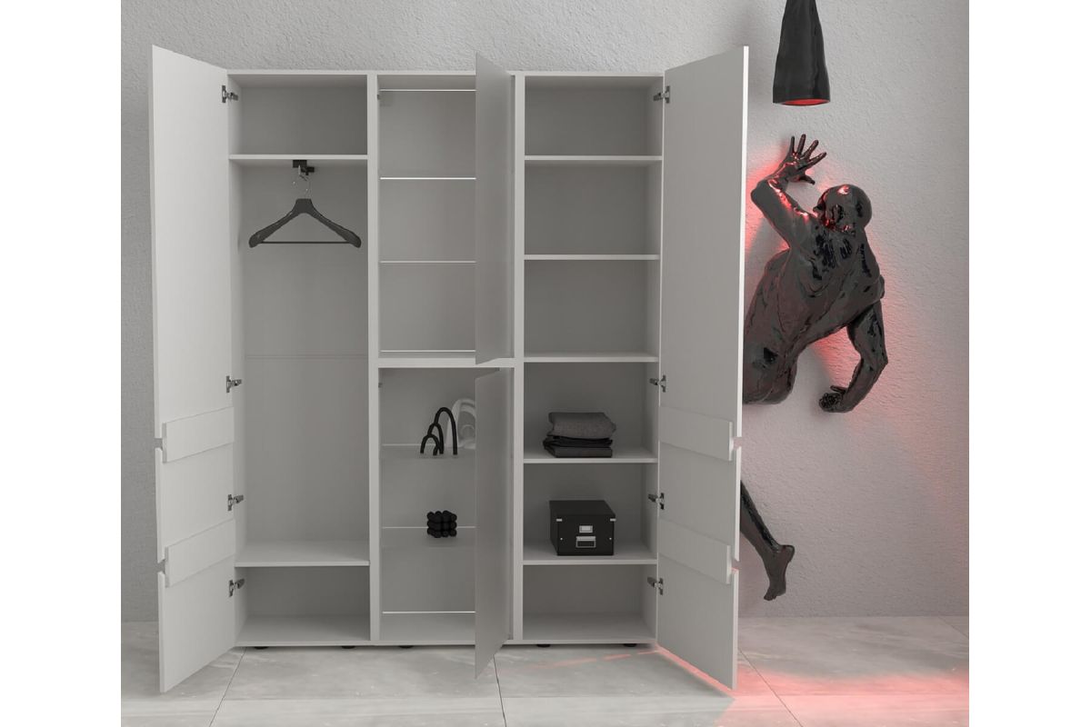 Размер (ШхВхГ)1503 х 2001 х 350 мм.Материал ЛДСП 16мм, Белый. В комплектацию шкафа входит : Пенал глухой - 2шт, Полки в пенал - 1 комплект, тумба со стеклом - 2 шт.