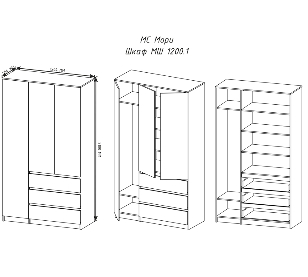 Мори Шкаф МШ1200.1 (3х ств с ящиками)