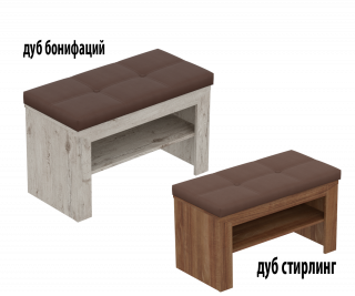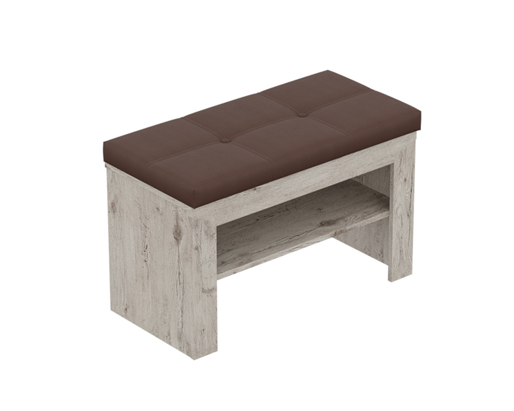Тумба открытая Соренто Глубина 385 Высота 400 Ширина 800мм - комфортная лаконичная банкетка для прихожей с полкой для обуви и с мягким стеганным сиденьем из искусственной кожи Домус в тонировке шоколад.