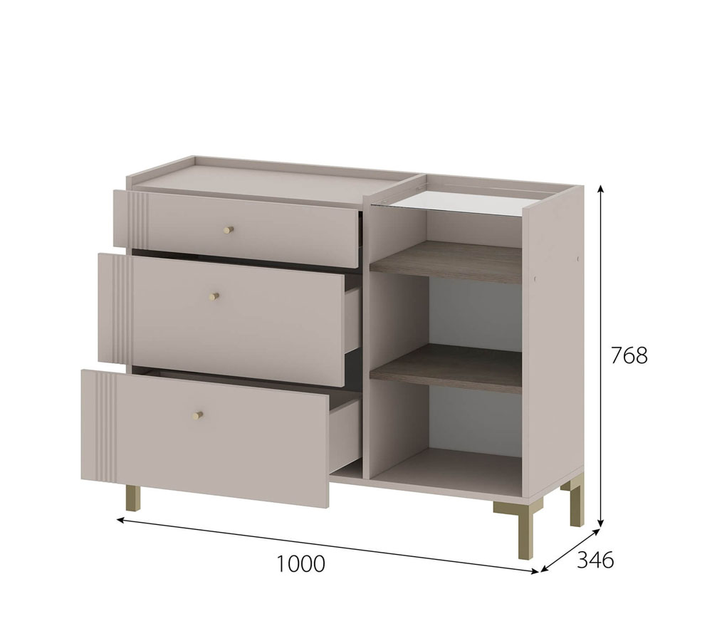 Комод 3 ящика 1 дверь Одетта Цвет: Дуб Эндгрейн/Меланж. Размер (ШхГхВ), мм: 1000х346х768.