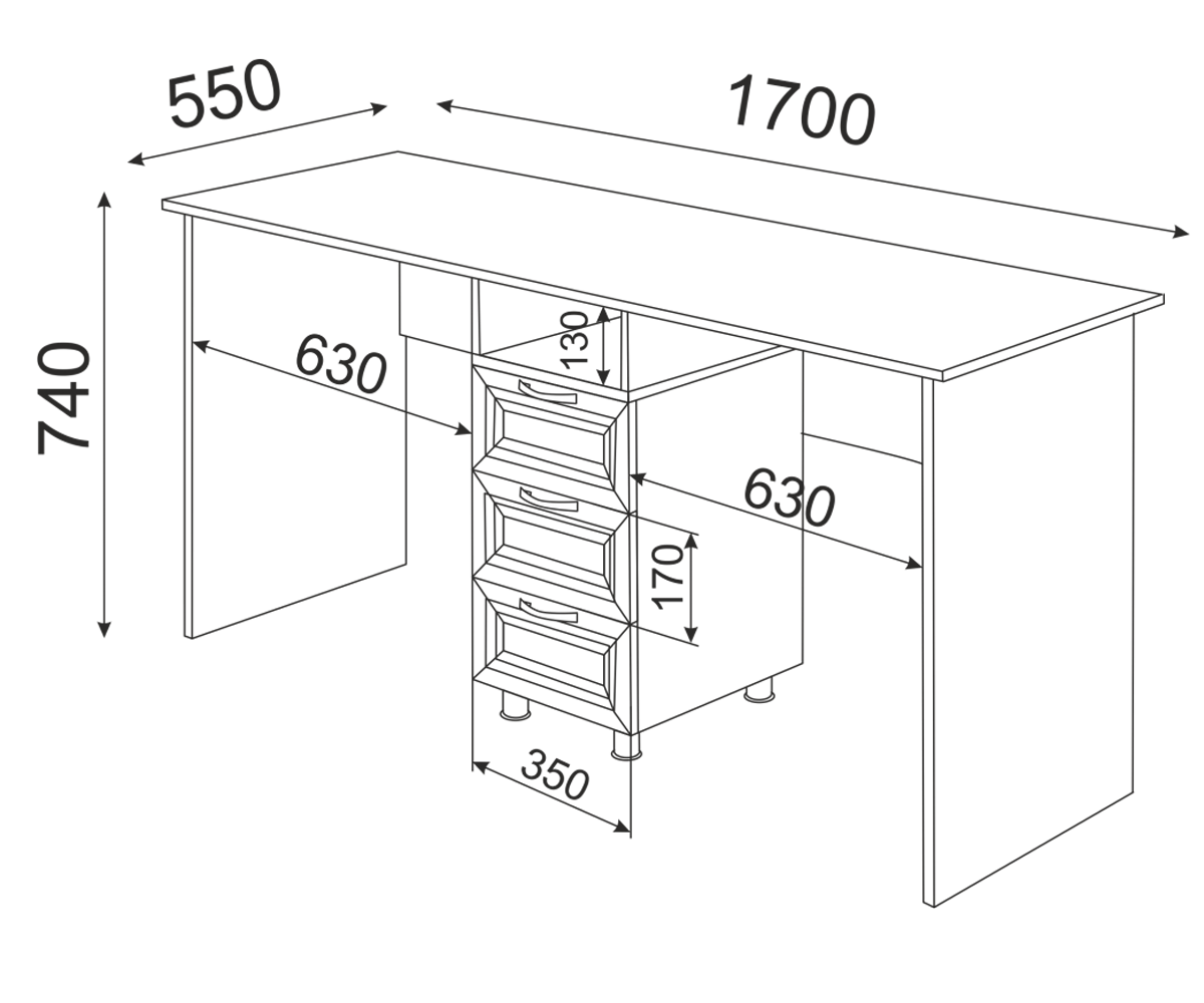 Габаритные размеры (ВхШхГ): 740 х 1700 х 550 ммКорпус: ЛДСП16мм Кромка: АБС