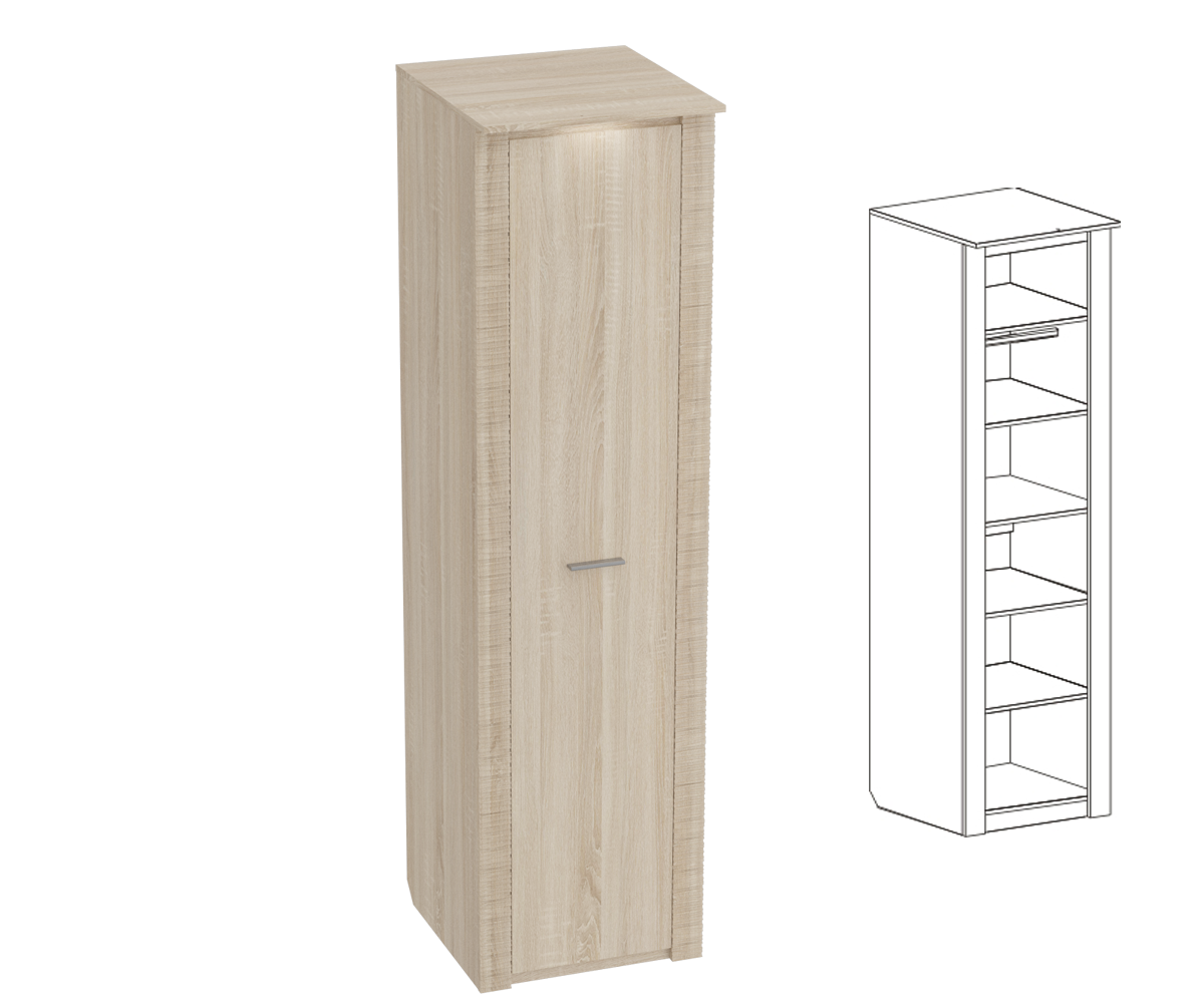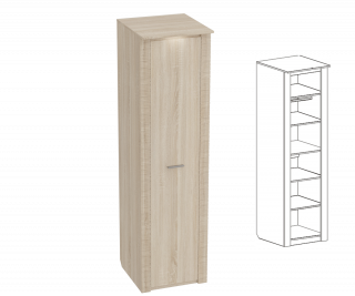 Размеры (ШхГхВ), мм: 590х645х2185. Шкаф пенал с полкам и штангой одностворчатый распашной.