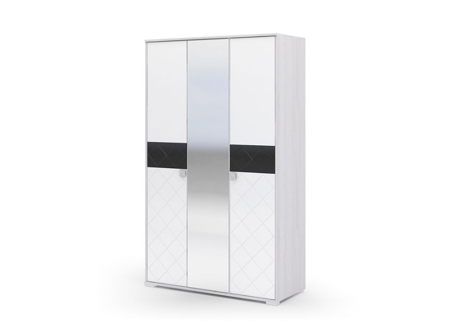 Особенности: Фреза, на фасад наклеивается зеркало, ручка пластмасса, цвет хром (32мм), штанга металл, петли без доводчика, зеркало 4мм с обработкой (рис.гравировка), способ крепления-2-х стор.скотч (клеить самостоятельно), тип сборки-универсальная, высота между полками 300мм, 378мм, внутреннее наполнение-полки, штанга.