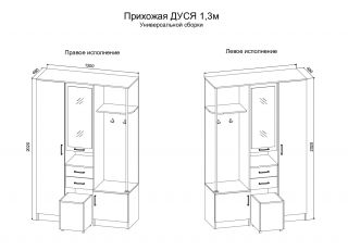 Дополнительно: Прихожая «Дуся» доступна в двух вариациях размеров: 1.3 и 1.7 м.