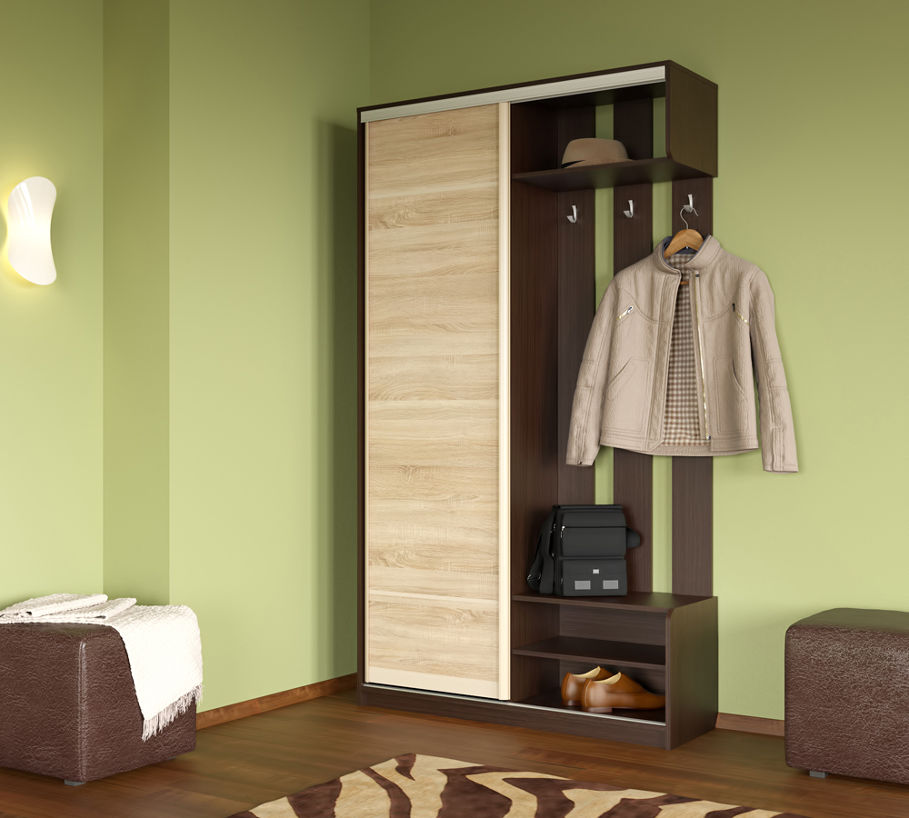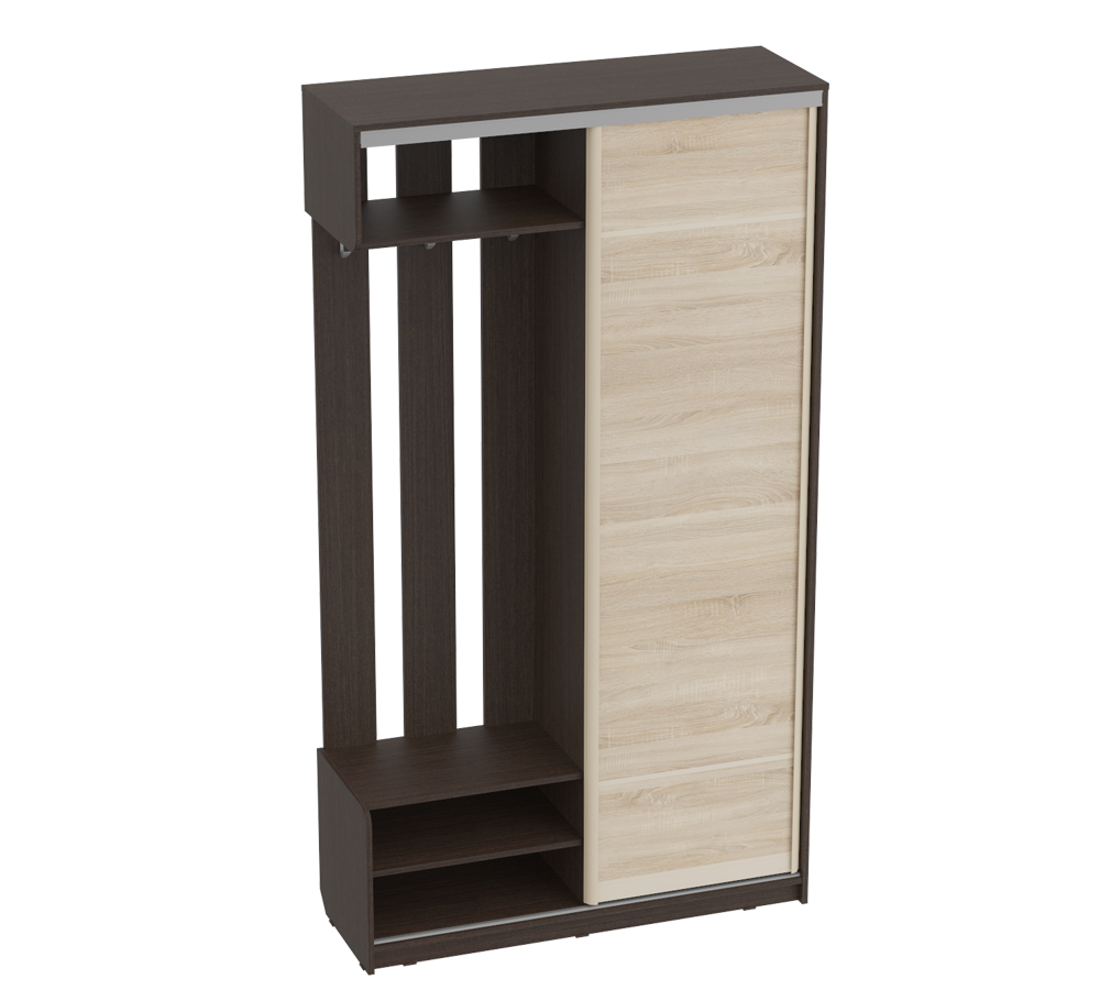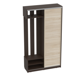 Прихожая Леон — шкаф-купе для коридора, оборудованный одной скользящей дверью. Изготовлена из ЛДСП толщиной 16 мм. Предлагается в цветах: Венге (корпус) и Венге или Дуб сонома (дверь). Модель не займет много места, при этом функциональность точно не пострадает, а за счет универсального цветового исполнения она хорошо будет гармонировать с другими оттенками в отделке и меблировке.