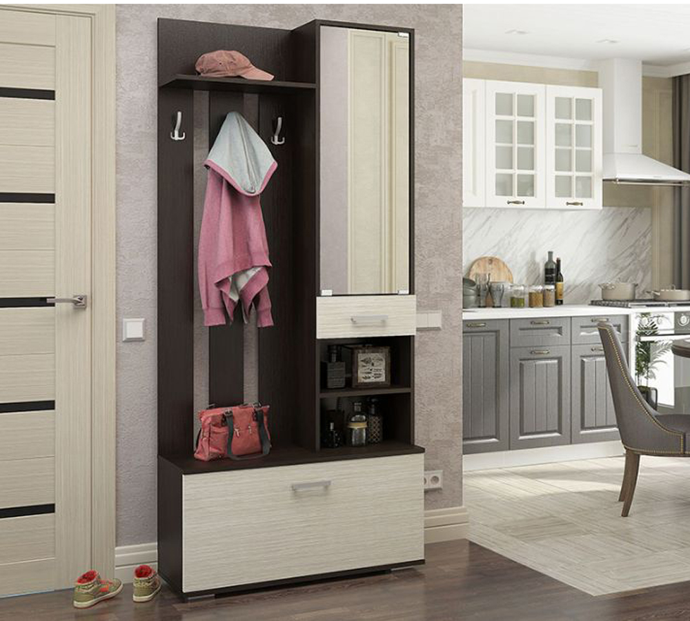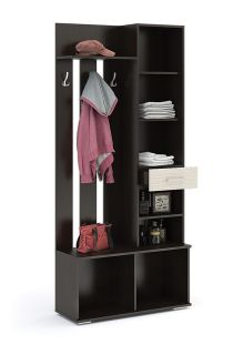 Прихожая «Сорренто». Такая мебель для прихожей станет идеальным вариантом для ценителей свободного пространства. Очень компактная, но при этом функциональная модель «Сорренто» не только избавит вас от загромождения пространства мебельными элементами, но и отлично справится со своей главной задачей, а именно компактным и удобным размещением всех необходимых вам вещей в прихожей. «Соррето»- это навесная вешалка для верхней одежды, открытые полки для различных вещей, большая вместительная полка для обуви, разделённая на 2 части, маленький выдвижной ящик и небольшие закрытые полки для вещей с зеркалом на дверце. Максимальное удобство использования в сочетании с доступной ценой делает модель «Соррето» идеальным вариантом для вашего дома.