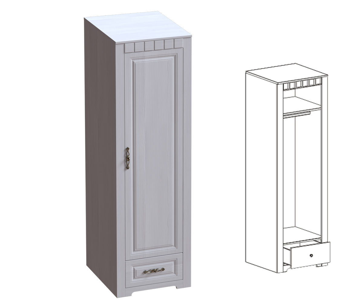 Пенал платяной однодверный с ящиком. Размеры (ШхГхВ), мм: 602х590х1970. Модульная спальня Прованс.