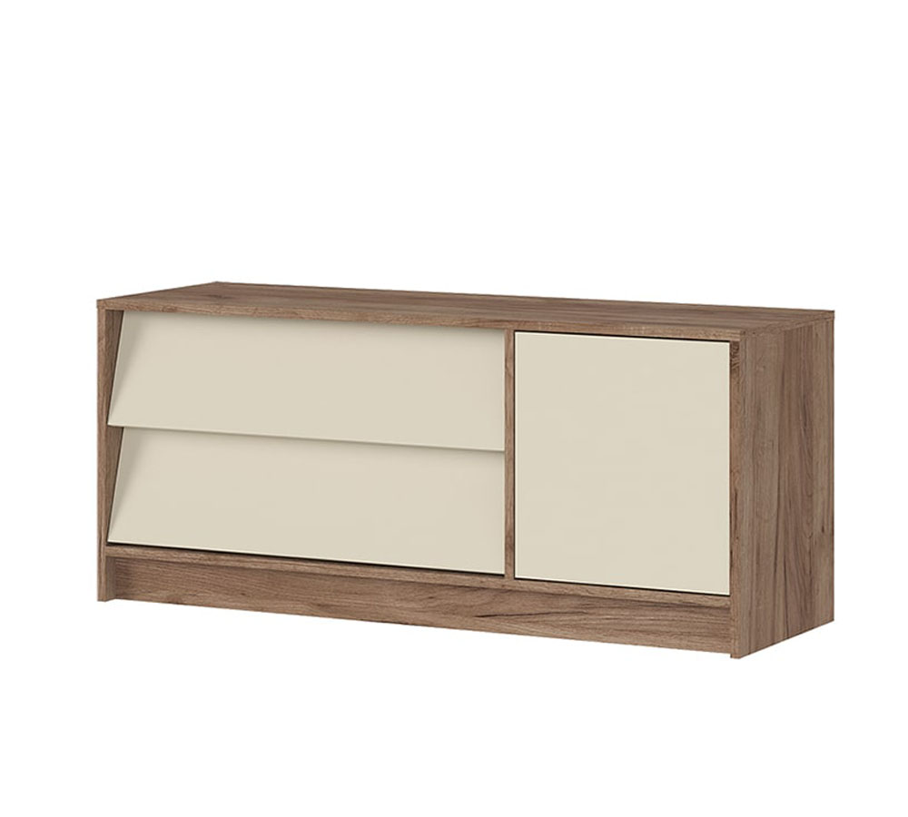 Фасады коллекции привлекают внимание необычной геометрией: плавно наклоненные линии ящиков гармонично сочетаются с ровными гладкими поверхностями створок. Благодаря такому решению мебель выглядит стильно и динамично, сохраняя при этом функциональность и удобство в использовании.