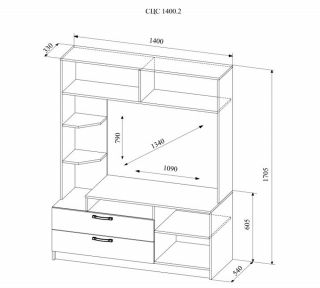 Мини стенка с большим количеством открытых полок для хранения предметов интерьера и двумя выдвижными ящиками. При необходимости стенку можно дополнить любым модулем линейки "Софи", все модули продаются отдельно. Телевизионная тумба имеет ниши для аудио- и видеоаппаратуры. Ниша под ТВ размером Ш1090, х В790 см.