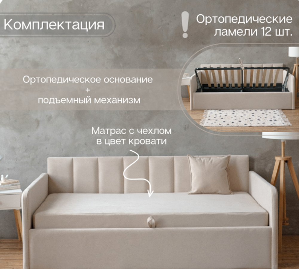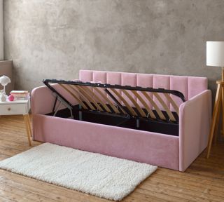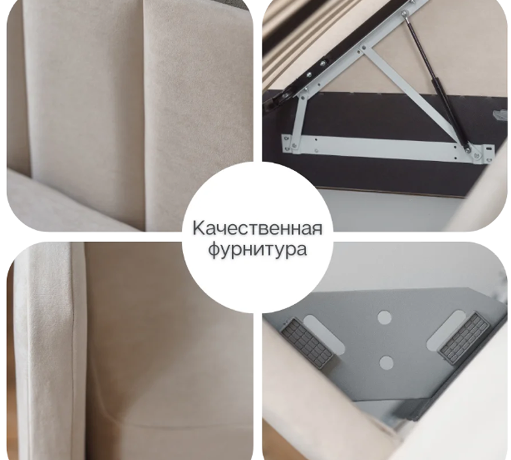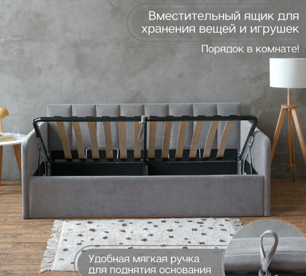 Встроенный подъемный механизм обеспечивает легкий доступ к просторному бельевому ящику, где вы сможете хранить подушки, одеяла или другие необходимые вещи.