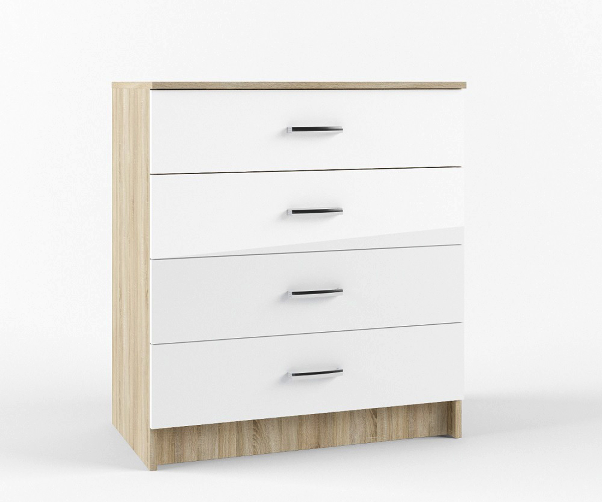 Комод с четырьмя выдвижными ящиками, фасад белый глянец, корпус сонома. В 835x Ш 800xГ 450мм.