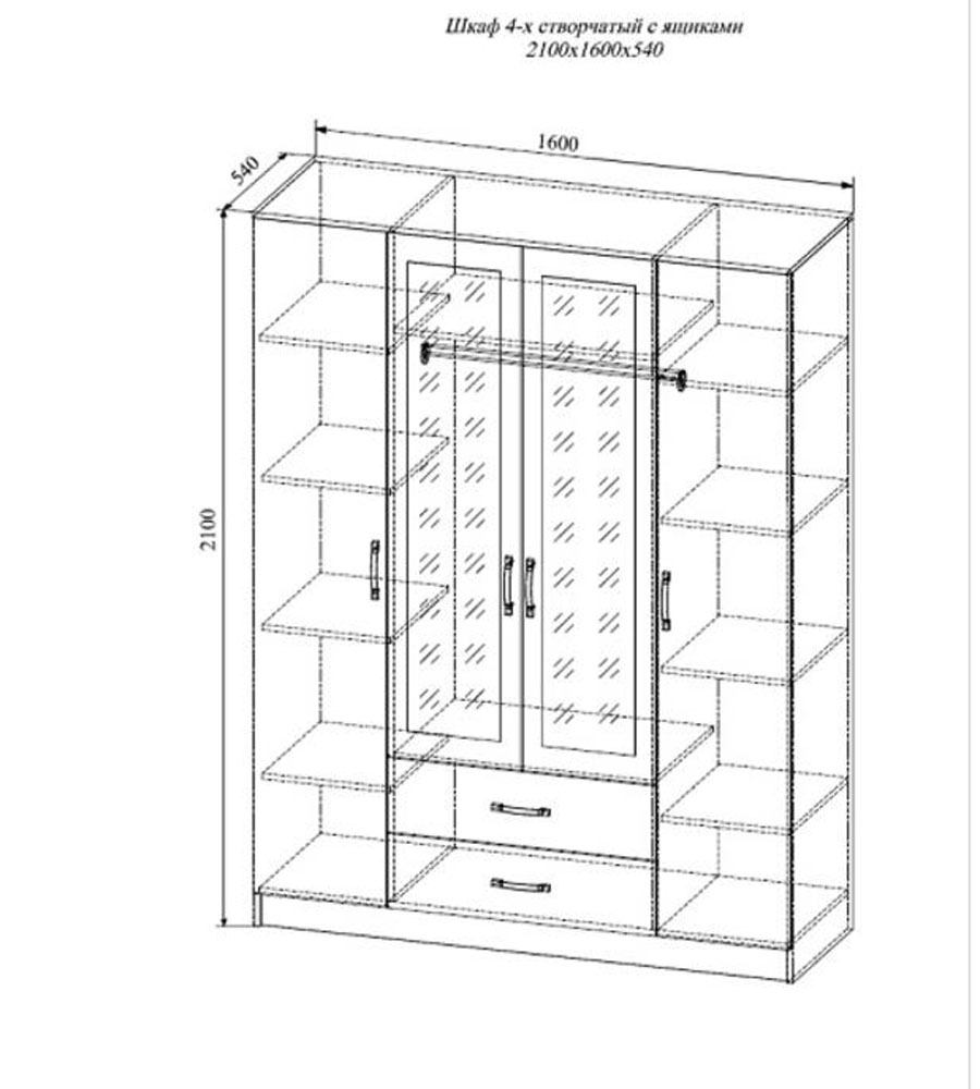 Габарит:В 2100*Ш 1600* Г 540 мм