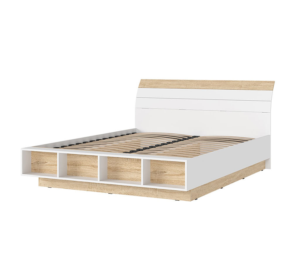 Кровать из коллекции Санса - это удачное сочетание современного дизайна, практичности и комфорта. Модель оснащена ортопедическим основанием с гнутыми ламелями, которое обеспечивает надёжную поддержку матраса и способствует качественному отдыху. Удобное изголовье с декоративной вставкой под дерево и вместительные открытые ниши в основании подходят для хранения книг, текстиля или других вещей. Контраст белого цвета и текстуры светлого дуба придаёт кровати лёгкость и делает её универсальным решением для любого интерьера спальни.