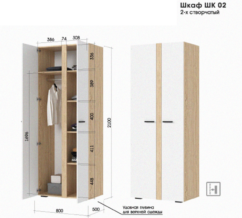 Двухстворчатый шкаф из комекции Санса сочетает современный дизайн и продуманную