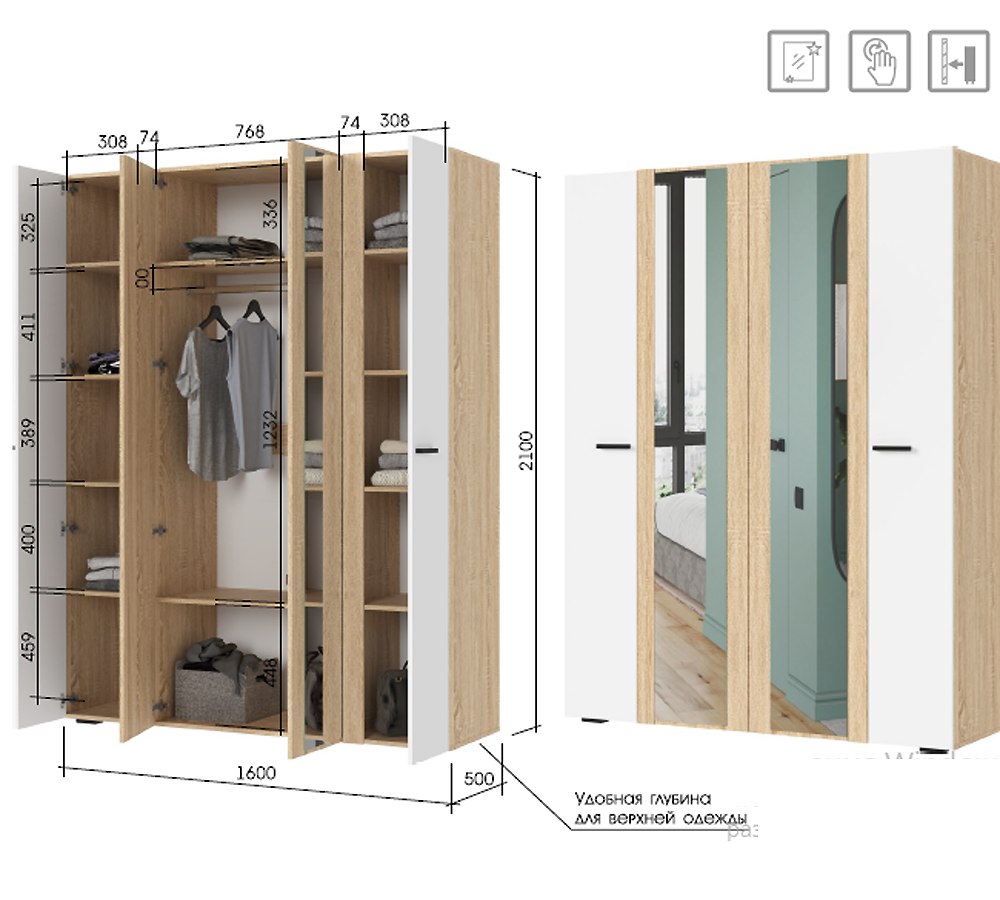 Размер Ш*В*Д(Г) 1600х2100х500