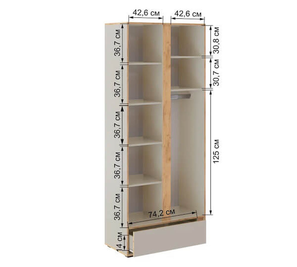 Опоры пластиковые 20мм (регулируемые), цвет Металлик, Ручки отсутствуют. Петли без доводчика. Направляющие: Металлические шариковые полного выдвижения. Штанга овальная стационарная металлическая.