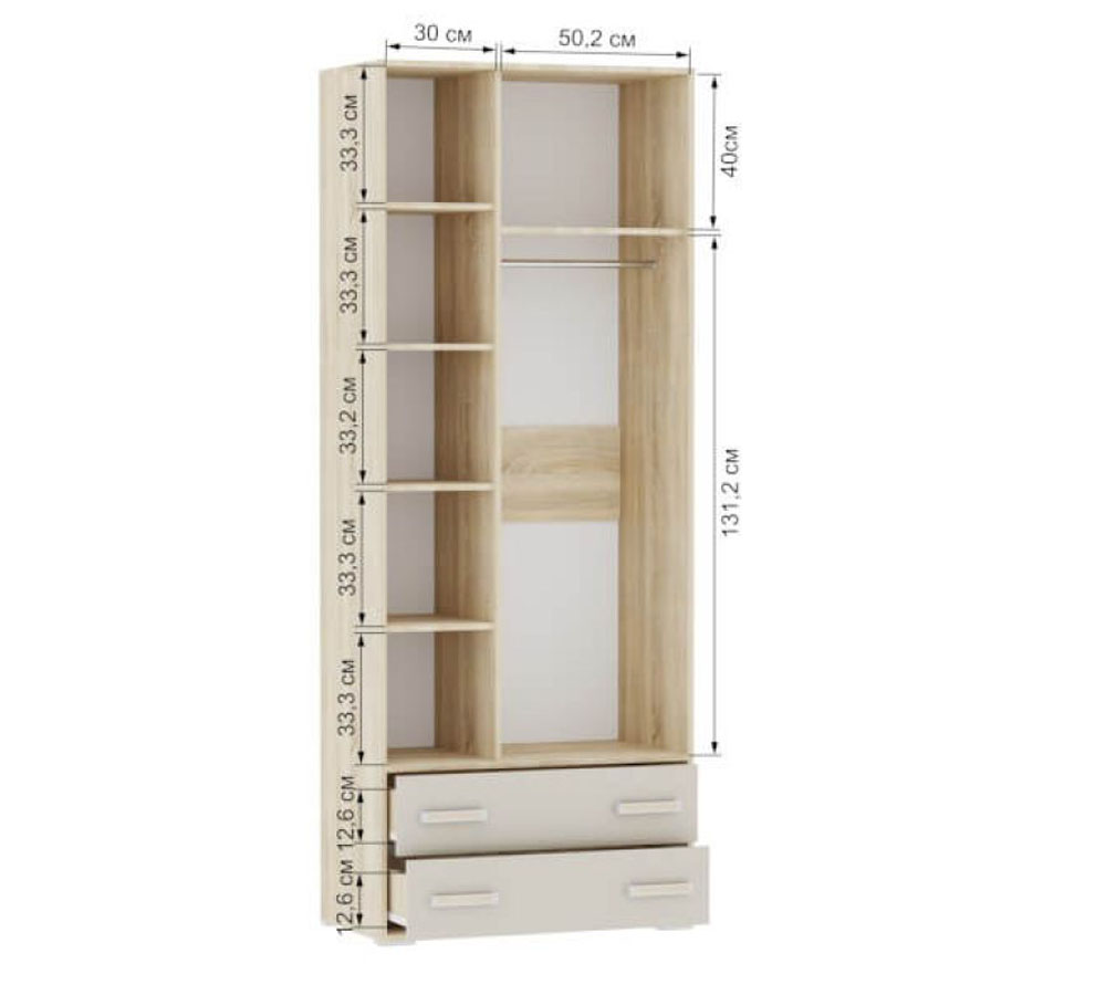 Опоры пластиковые 20мм (регулируемые), цвет Металлик. Ручки скоба пластик, цвет Металлик, со вставкой в цвет корпуса. Петли без доводчика. Направляющие - металлические, роликовые. Штанга овальная стационарная металлическая