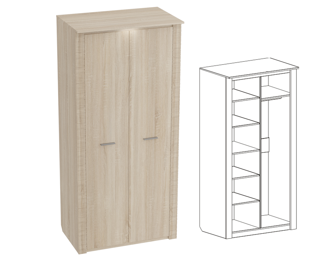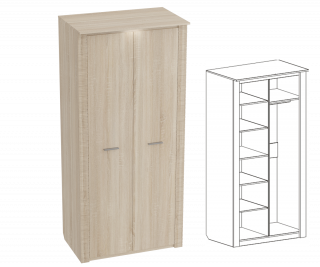 Размеры (ШхГхВ), мм: 1010х645х2185. Шкаф 2х дверный распашной наполнение комбинированное одна половина полки, другая штанга и две полки.