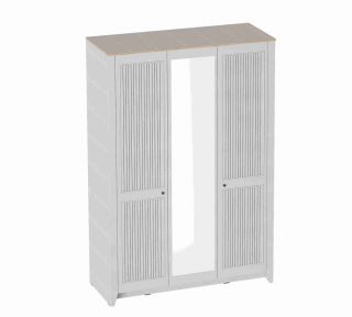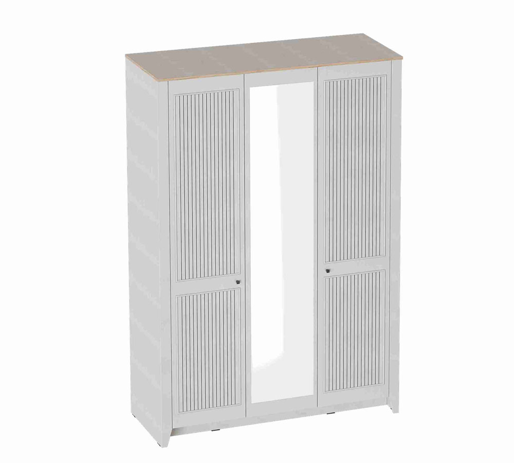 Шкаф 3 дверный Валенсия с зеркалом выполнен из (ЛДСП) в комбинации Дуб натуральный светлый / Персидский жемчуг.