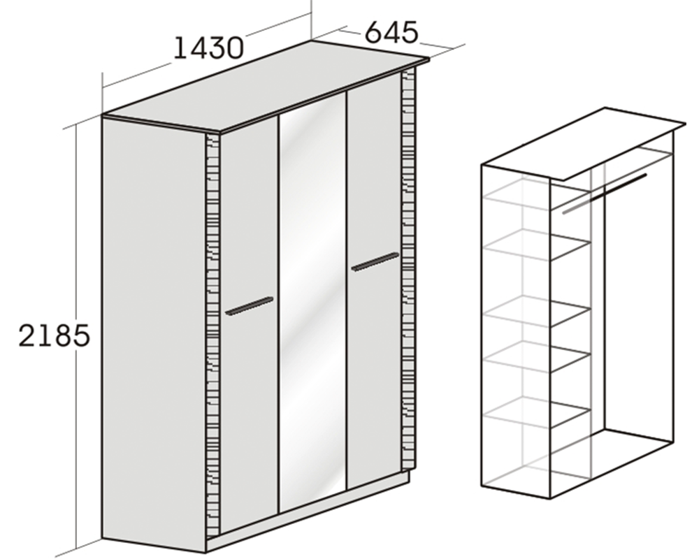Размеры (ШхГхВ), мм: 1430х645х2185