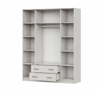 По краям располагаются бельевые отделения шириной 384 мм. В каждой из них устанавливается по четыре полки.