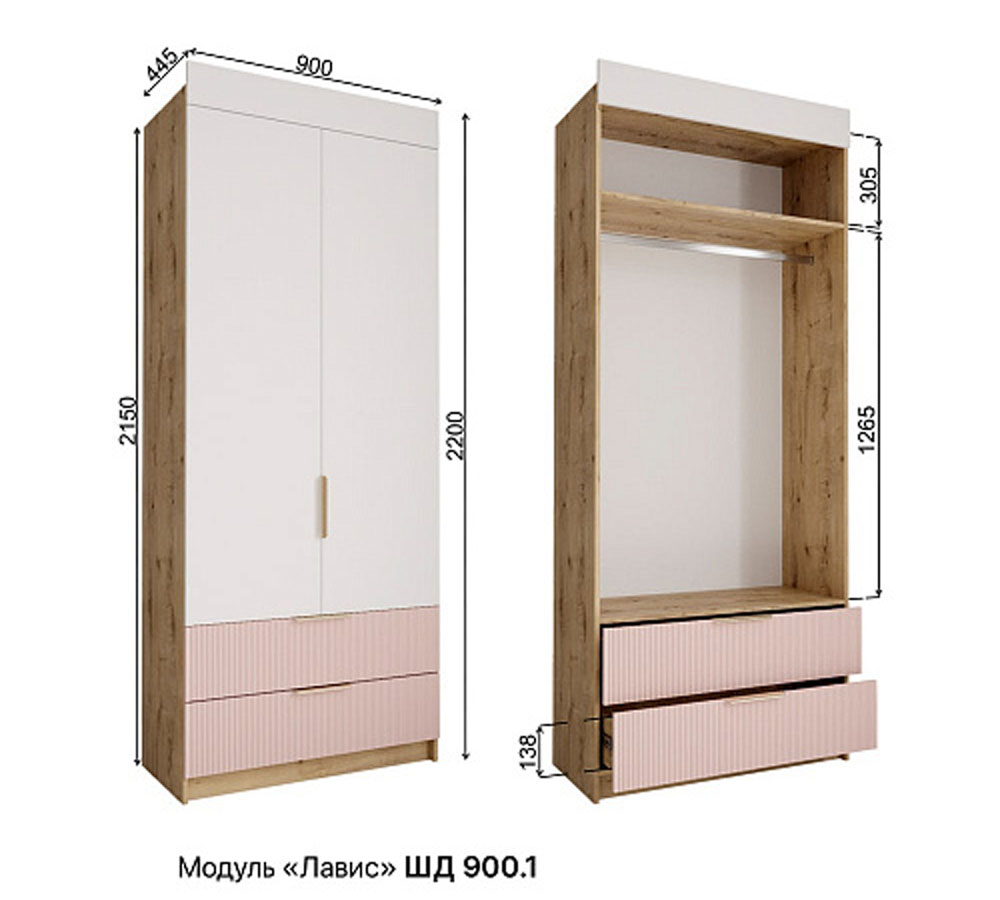 Шкаф 900 с ящиками Лавис ШД 900.1 (Белый)