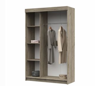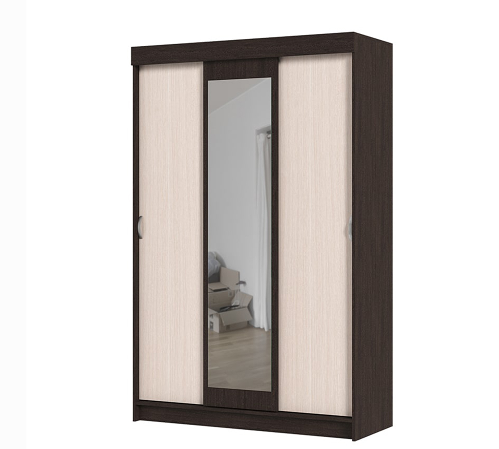 Шкаф купе "Бася" эконом вариант. Простой шкаф-купе трехдверный с зеркалом для одежды. Разделен на две секции, Большая секция 2/3 шкафа занимает штанга для плечиков сверху полка под головные уборы, вторая часть 1/3 шкафа полки.