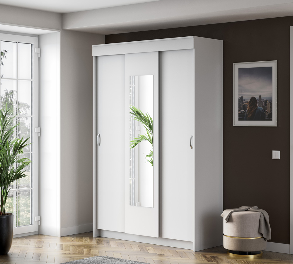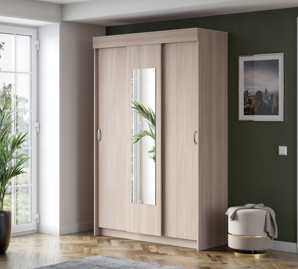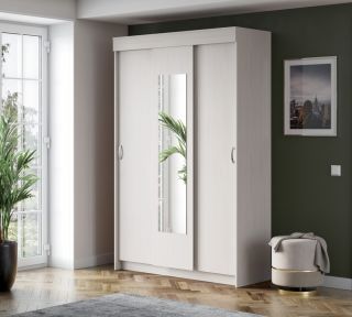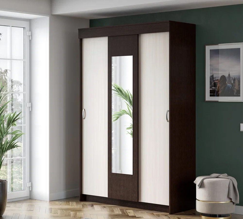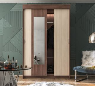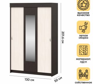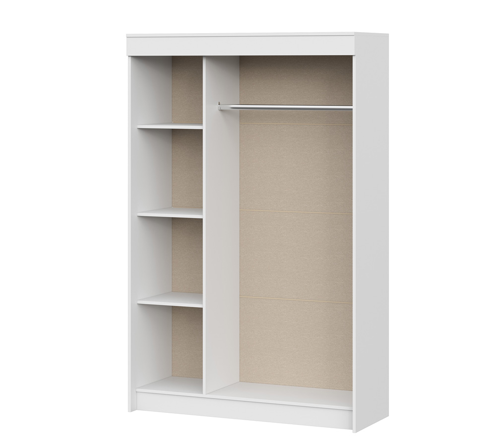 Шкаф состоит из двух секций: одна оснащена штангой для вешалок, вторая - тремя полками.