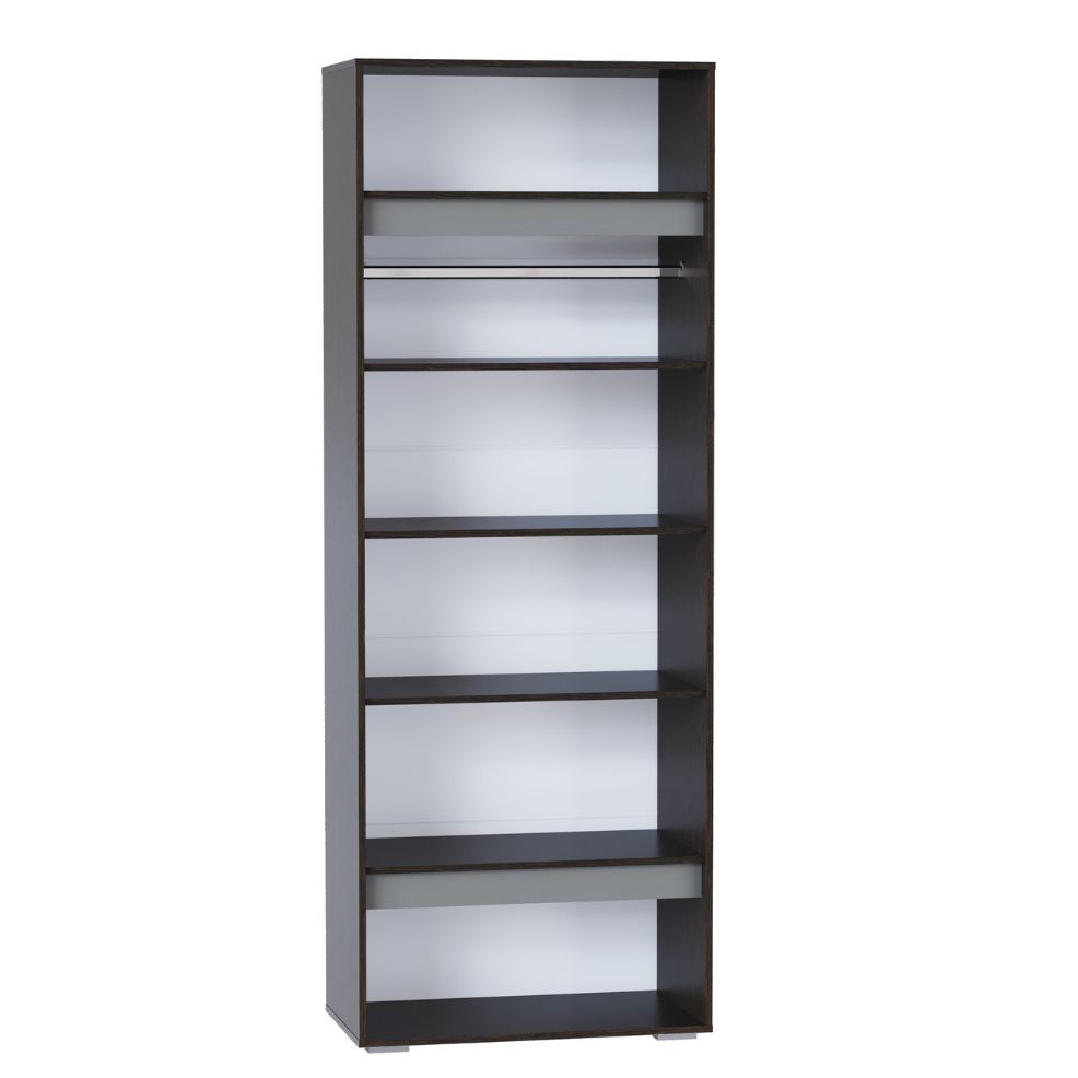 Шкаф Прага выполнен в трех цветовых решениях - венге/графит, кашемир, белый. Наполнение шкафа включает в себя полки и штангу, удобство представлено петлями с доводчиками, а регулируемые опоры помогут скорректировать неровности пола. Высоту шкафа можно увеличить до 2,5м с помощью антресоли.