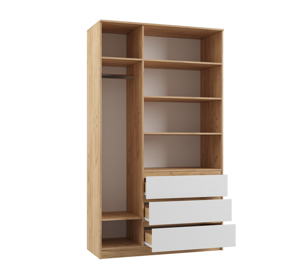 Шкаф наполнение - штанга, полки и три ящика.
