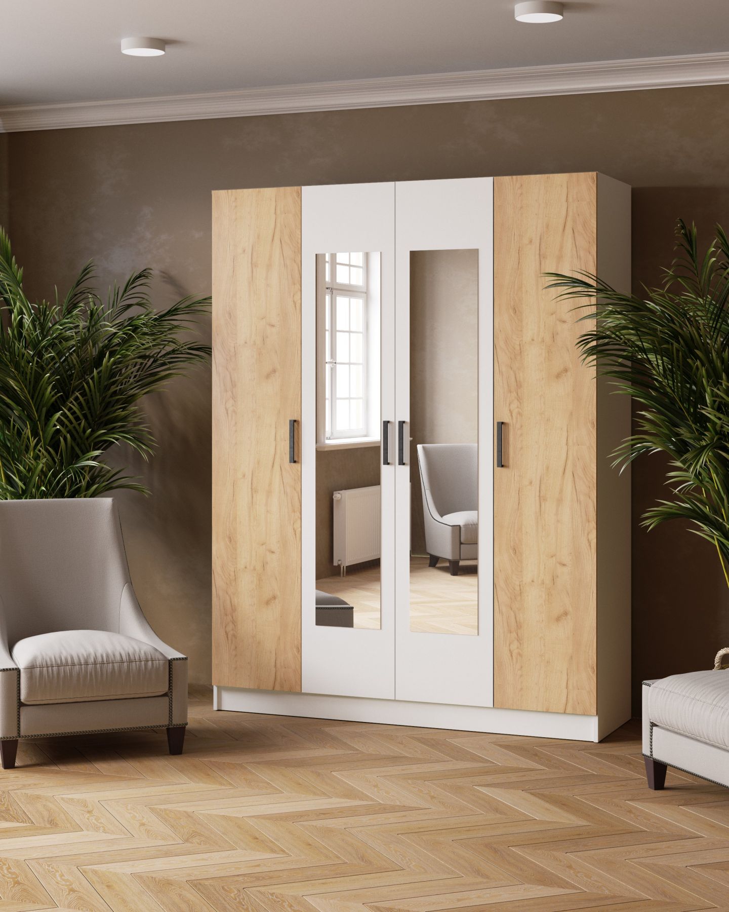 Вариант-2: Корпус ЛДСП Белый с тиснением «Древесные поры», Фасад ЛДСП Белый с тиснением «Древесные поры», ЛДСП Дуб Крафт Золотой