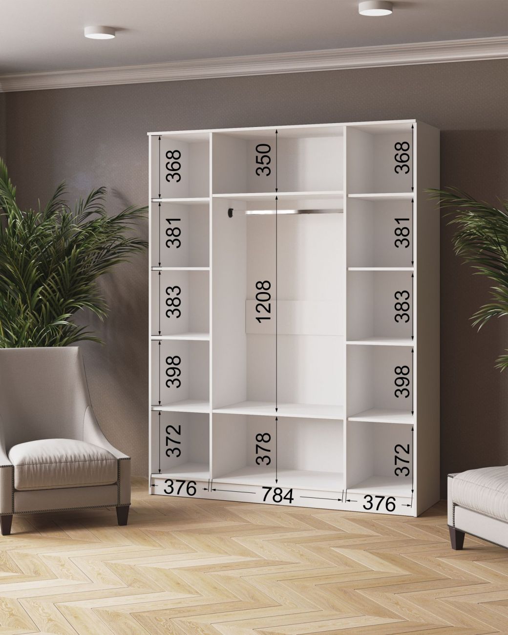 Вариант-3: Корпус ЛДСП Белый с тиснением «Древесные поры», Фасад ЛДСП Белый с тиснением «Древесные поры», ЛДСП Ателье Светлое