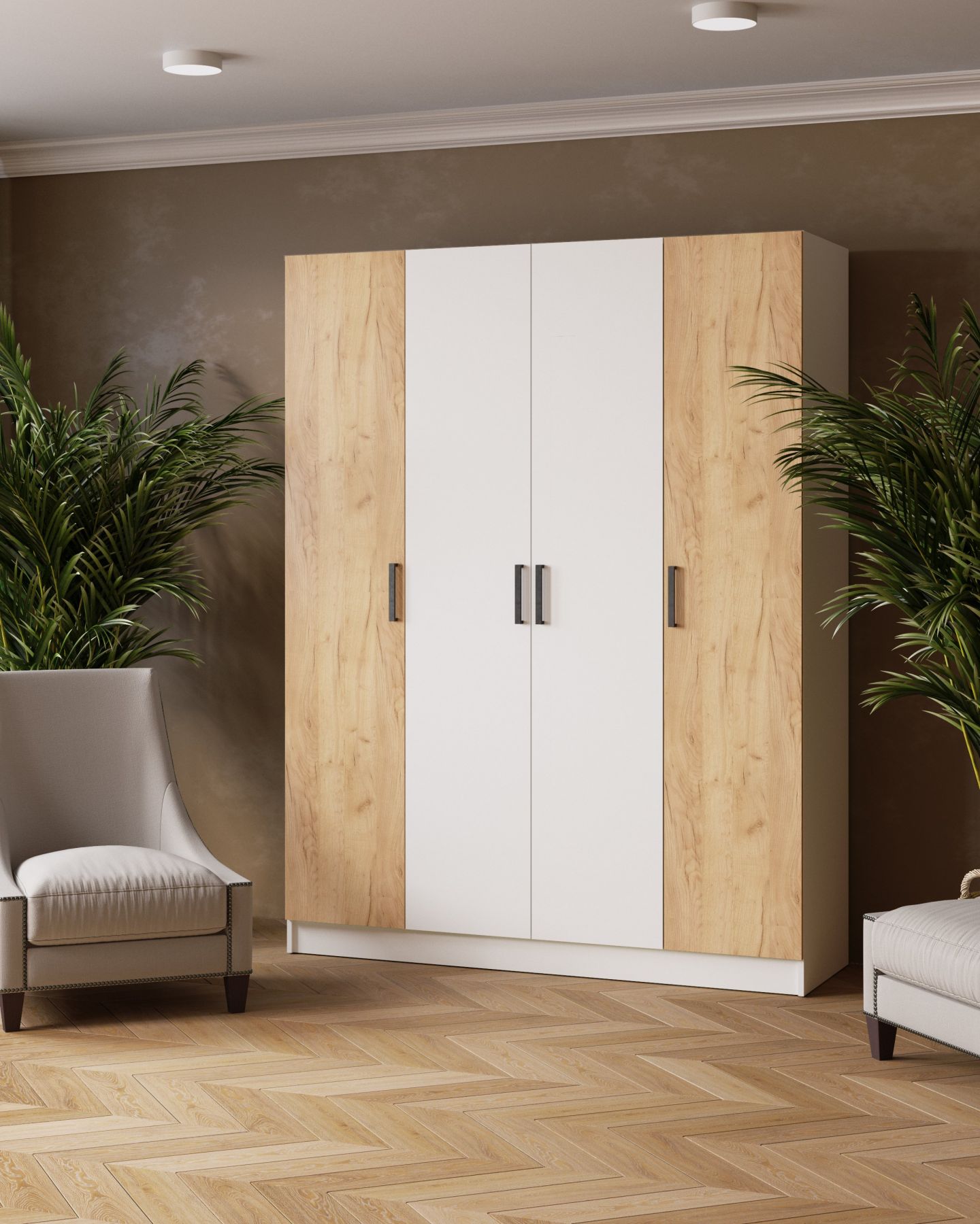 Вариант-2: Корпус ЛДСП Белый с тиснением «Древесные поры», Фасад ЛДСП Белый с тиснением «Древесные поры», ЛДСП Дуб Крафт Золотой