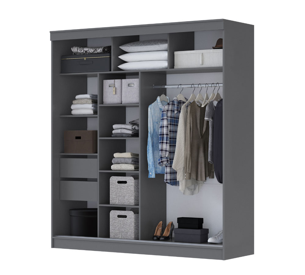 Шкаф-купе Орион — это современное и стильное украшение вашего дома. Его раздвижные двери обеспечивают легкий доступ к содержимому, позволяя экономить пространство в комнате. Внутреннее пространство шкафа тщательно продумано, чтобы вы могли с удобством разместить все свои вещи.