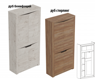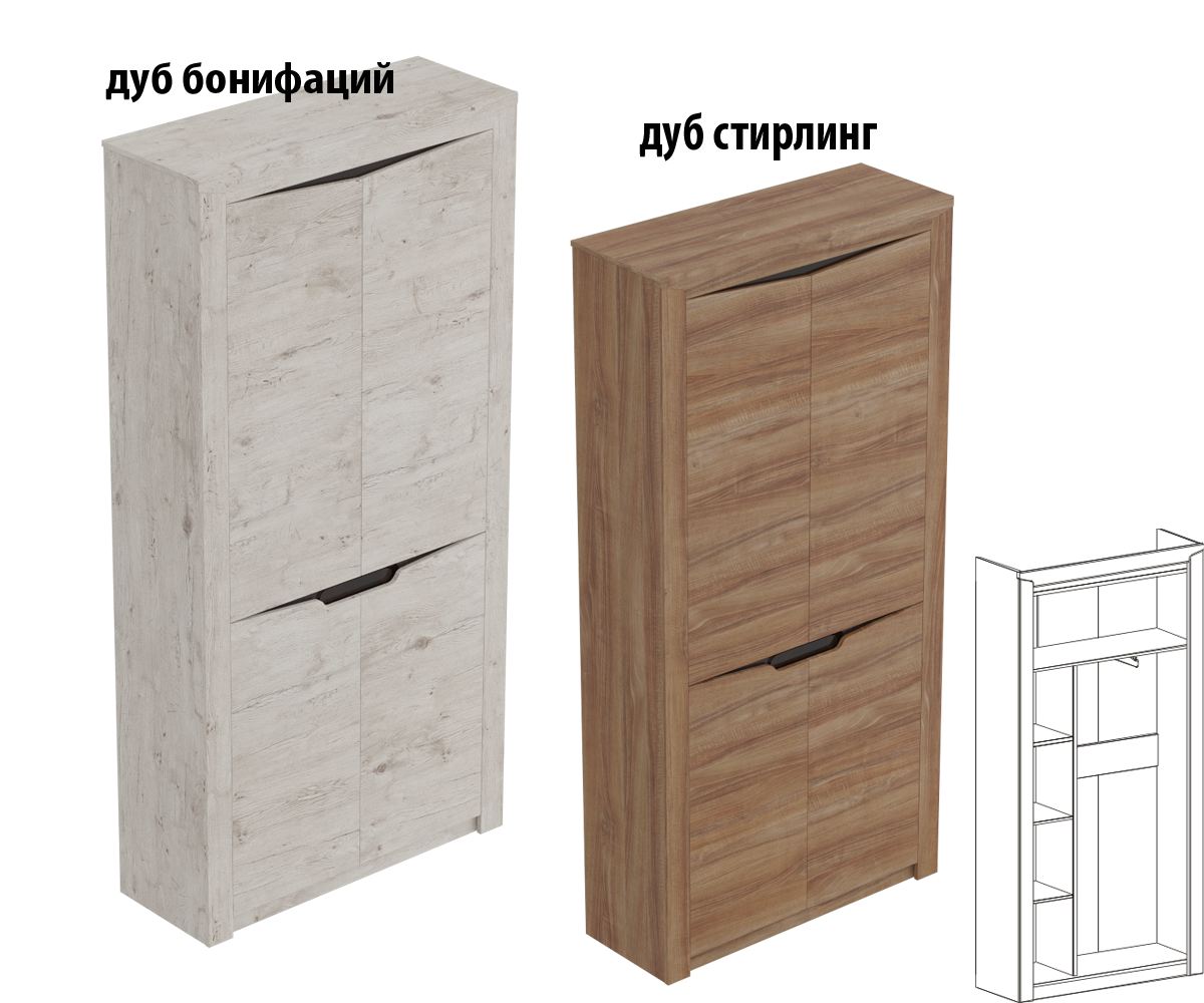 Габарит: (ШхГхВ) 1070х385х2100мм. Шкаф двухдверный распашной наполнение полка и евроштанга. Модули разработаны с учетом возможности создания разных вариантов компоновки – в зависимости от площади помещения и пожеланий покупателя.