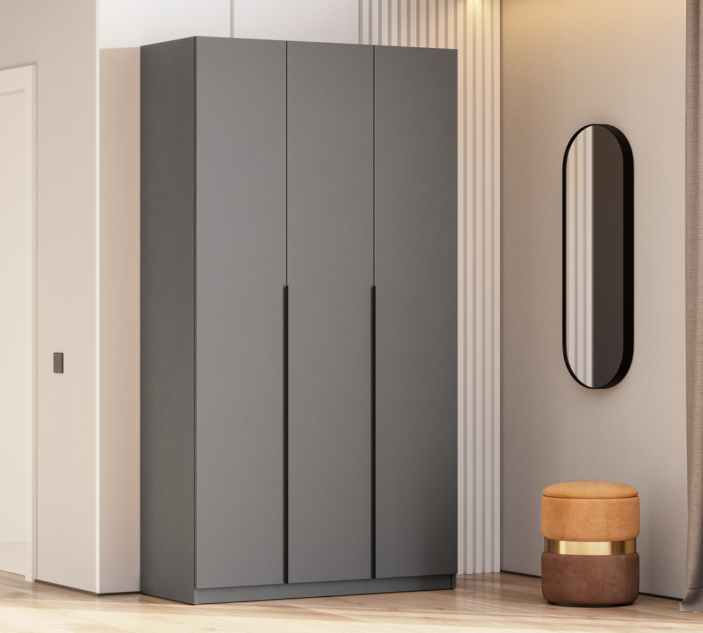 Представляем Вашему вниманию Новинку из линейки NN мебели — шкафную группу ШК 5, выполненную из ЛДСП Белый текстурный и Графит серый. Данная линейка состоит из трех видов шкафов: 2х створчатый, 3х створчатый и 4х створчатый, каждый из которых может быть дополнительно укомплектован полками и ящиками.