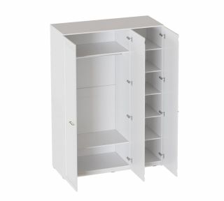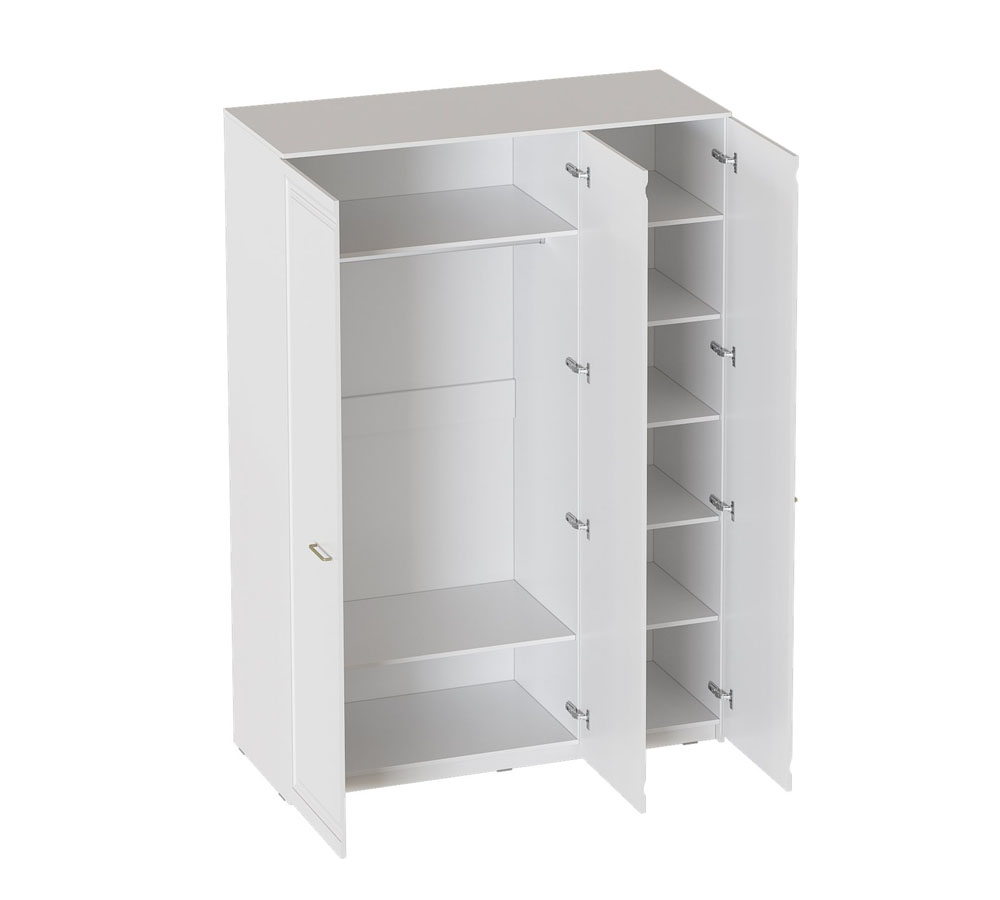 Внутреннее пространство шкафа разделено на два отделения: слева находится отделение для одежды с одной большой стационарной полкой, одной большой съёмной полкой и продольной металлической штангой; справа находится отделение с одной небольшой стационарной полкой и четырьмя съёмными полками. Двери шкафа оснащены петлями с амортизаторами.